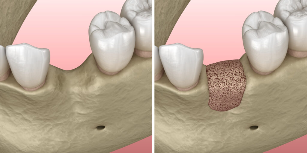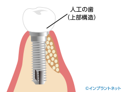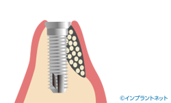 GBRをはじめとした骨造成術および骨誘導再生術には人工骨や自家骨(自分の骨)が使用され、骨の高さや幅が増します。ですが、人工骨や自家骨は手術後すぐに周囲の骨と馴染むわけではありません。